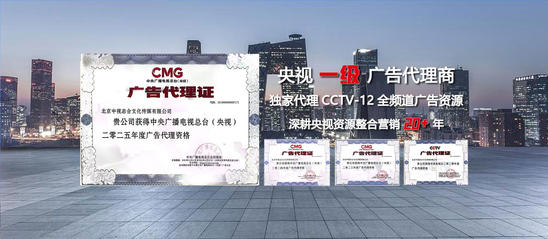 中視志合核心團隊專注央視廣告業務20+年,公司主要從事央視廣告片定向拍攝制作、央視廣告方案策劃、央視廣告審查與報播、央視廣告投放與后期監測服務,先后為800多家公司、1200多個品牌提供央視廣告投放相關業務。我們企業珍惜每一個人才,我們擁有完善的央視廣告作業流程,我們專注央視,我們要求實效,我們追求價值最大化,我們保證您企業花的每一筆投入都物超所值